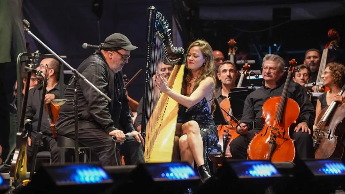 Un brindis vibrante e hipnótico para el público, a puro rocanrol, baladas y canciones cuyanas, con el respaldo imponente de la Orquesta Filarmónica de Mendoza, sus 75 músicos y la conducción del maestro Popi Spatoco.