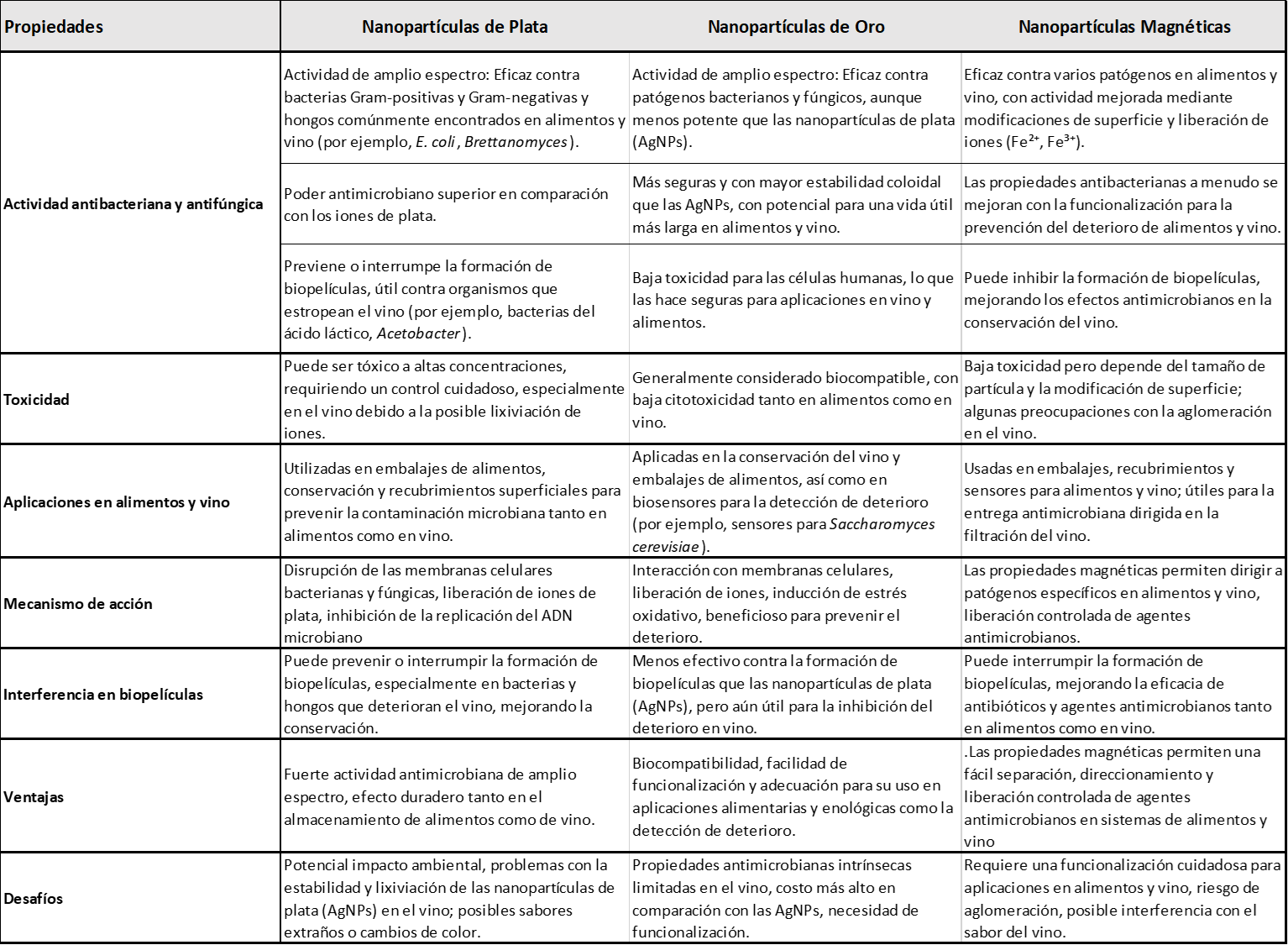 La detección basada en nanopartículas de oro, plata y magnéticas en enología tiene el potencial de mejorar el análisis del vino, el control de calidad y la detección de compuestos específicos relacionados con el vino. Cada tipo de nanopartícula aporta beneficios y aplicaciones particulares a la industria vinícola.