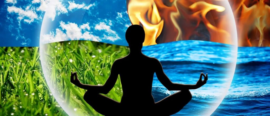 Según la cosmovisión ayurvédica, todo en el universo está compuesto por los cinco elementos de la naturaleza. Estos cinco elementos son éter, aire, fuego, agua y tierra. Cada persona nace con un equilibrio único y perfecto de elementos en su cuerpo. Pero a medida que avanzamos en la vida, nuestras experiencias, trabajos, relaciones y el clima en el que vivimos influyen en el equilibrio de esos elementos en el cuerpo. Constantemente recibimos los elementos a través de nuestros cinco sentidos, y esto puede causar un desequilibrio en nuestros cuerpos. Estos desequilibrios son la raíz de las dolencias mentales, físicas y emocionales.