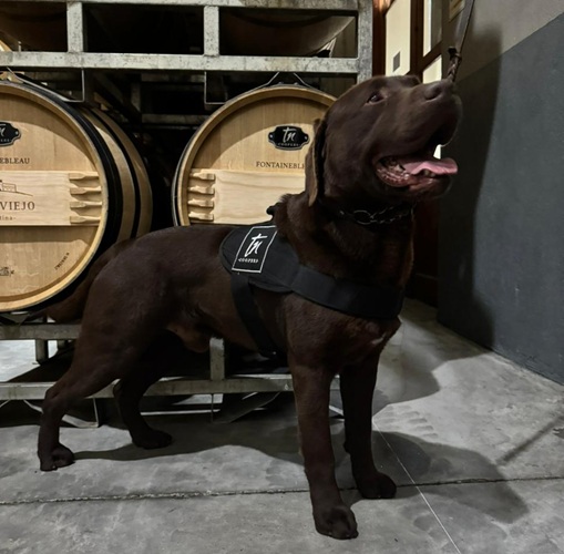 Dos eficaces y bien educados perritos labradores que trabajan para la tonelería chilena TN Coopers a cambio de mucho amor, ricas comidas y prepaga veterinaria para ellos y sus familias, llegaron a esta provincia para mostrar sus habilidades en la detección de contaminantes TCA y TBA, compuestos que pueden alterar el aroma y sabor del vino. Bonny y Clein (pariente de Clyde, su antecesor en esta especialidad) integran el Programa Natinga de la empresa trasandina, y vienen a colaborar junto a su entrenador Marco Briceño (foto principal, junto a Clein) para asegurar la calidad de los vinos de reconocidas bodegas como Las Perdices, Los Haroldos, Doña Paula y Catena Zapata, entre otras, para llevar adelante inspecciones técnicas y demostraciones de detección.