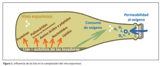 Asimismo, la liberación de proteínas, polisacáridos y manoproteínas mejora la persistencia, cremosidad y finura de la espuma, características valoradas en vinos espumosos de alta gama, y contribuye a una efervescencia más pausada y elegante, evitando burbujas grandes o efervescencia agresiva. Por otra parte, las lías consumen oxígeno lo que contribuye a la protección del vino espumoso frente a la oxidación lo que es especialmente relevante en largos períodos de envejecimiento en botella.