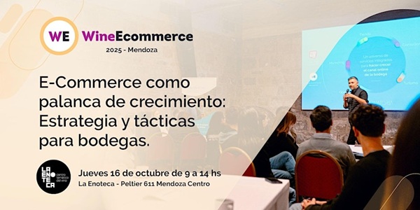 El jueves 16/10/2025, de 9 a 14 hs, se realizará una nueva edición de Wine E-commerce Mendoza en La Enoteca. Durante la jornada se abordará la temática del e-commerce como palanca de crecimiento, estrategia y tácticas para bodegas. Como en todas las ediciones, especialistas en e-commerce expondrán sobre temas de interés para el sector y casos reales.