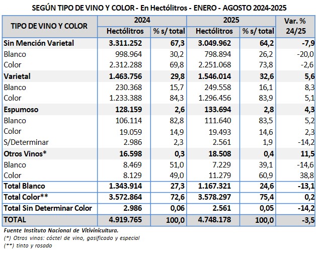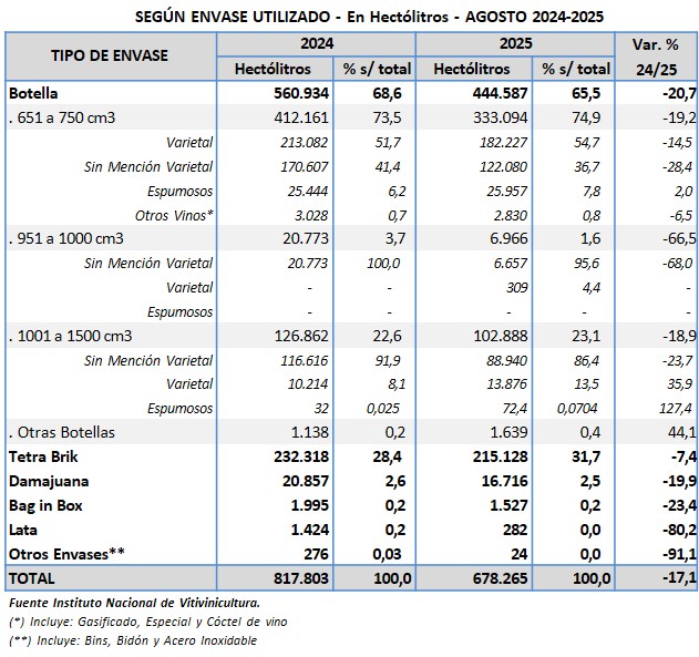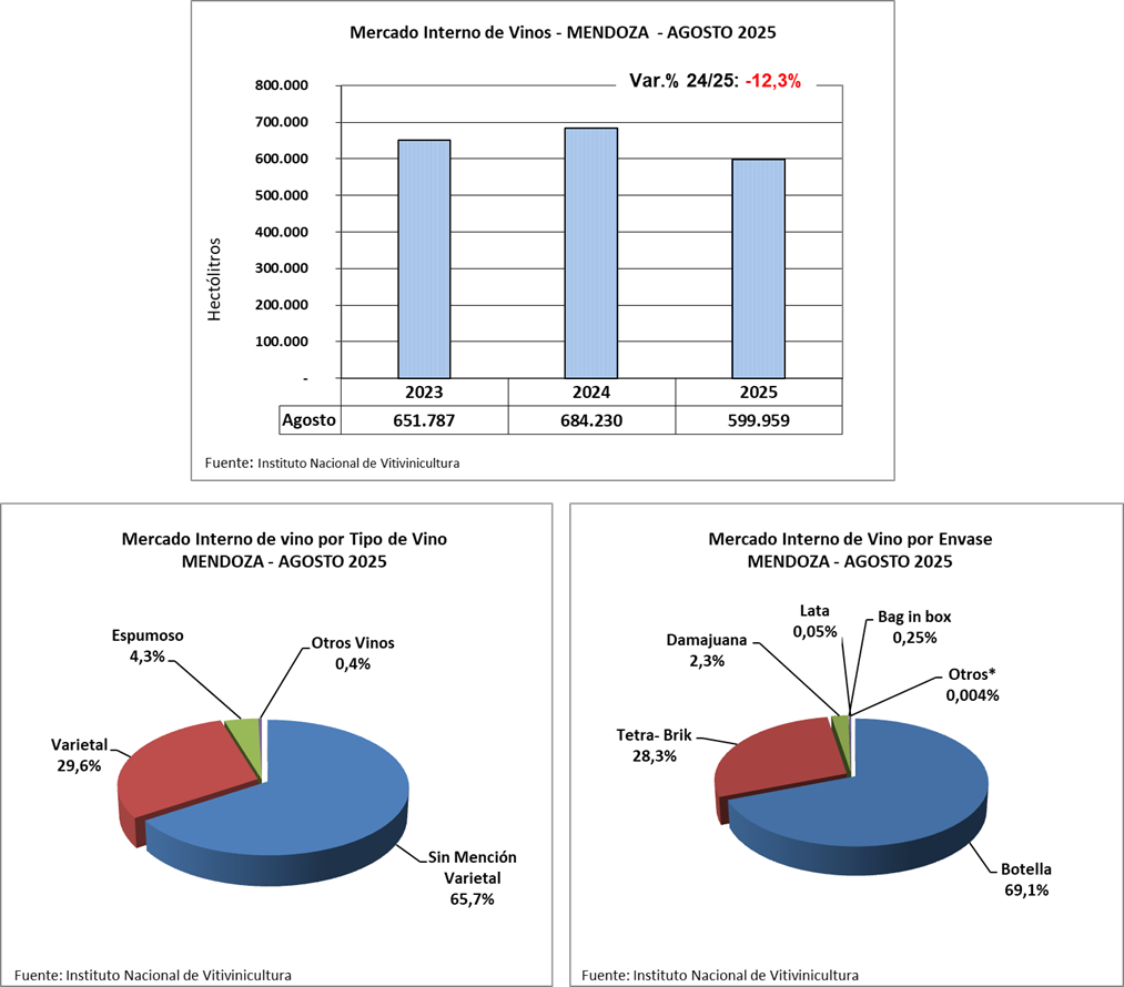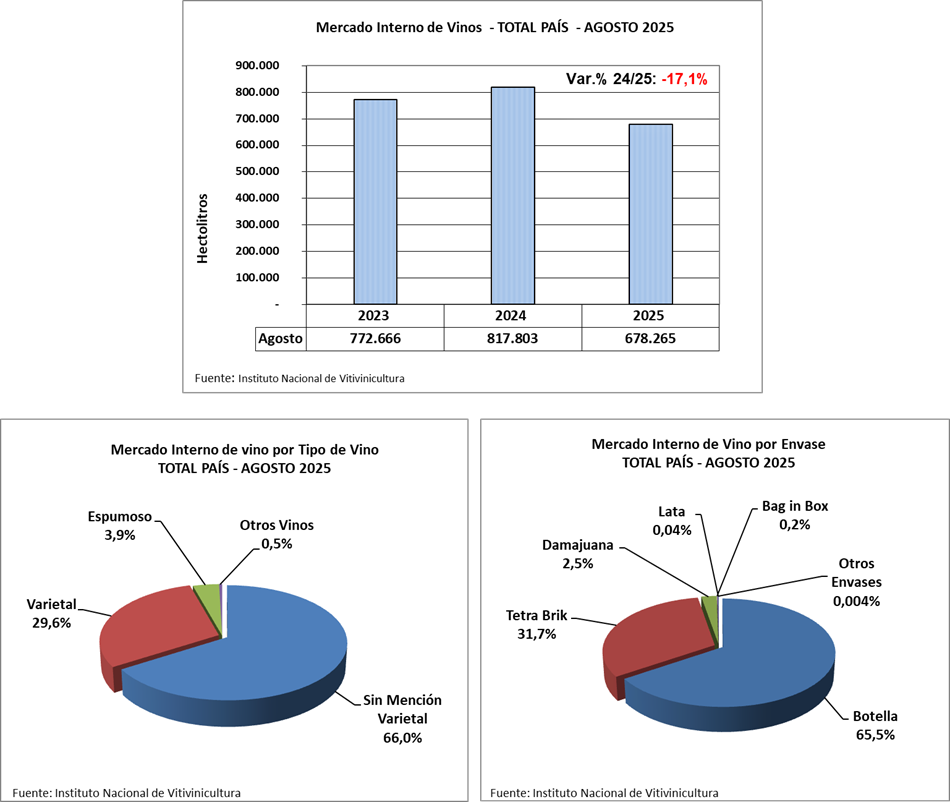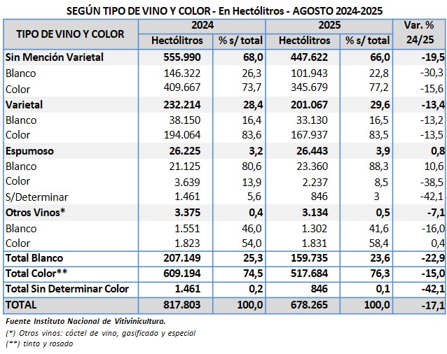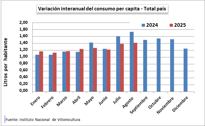 Con una caída del 18,3% en agosto, el consumo de vino en Argentina baja a 1,42 lt. per cápita al mes