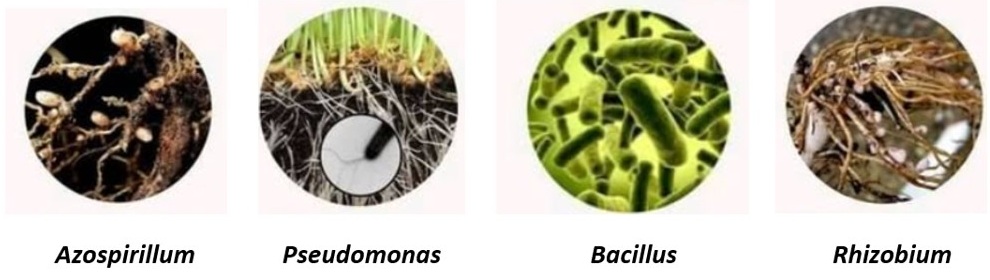 Algunos de los géneros claves son: Azospirillum, Pseudomonas, Bacillus, Rhizobium entre otros. Sus principales mecanismos de acción son: