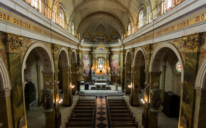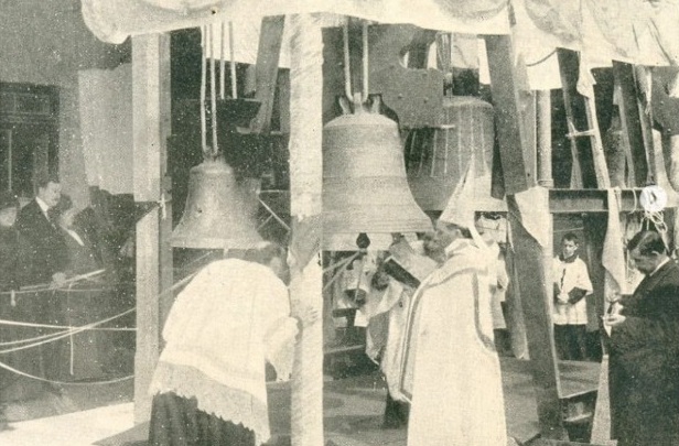 Los vitrales fueron realizados especialmente en la casa Mayer de Baviera, Alemania, y las 6 campanas de hierro fundido llegaron como una donación desde Udine, Italia. En el centro del campanario, un reloj donado por Domingo Bombal.