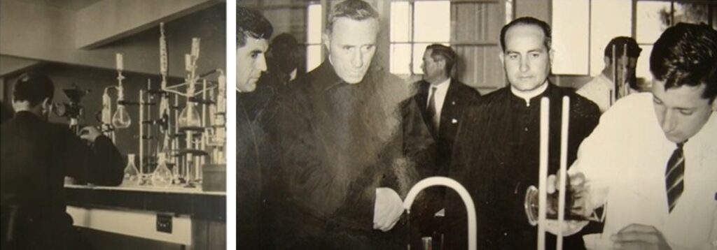 En 1926 se inaugura la nueva sede con dos salas, una para la teoría y otra para la práctica; mesones de cemento armado revestidos de azulejos, en el centro, como en un lugar de honor, el primitivo mesón de madera. Se amplió el instrumental con un ebulloscopio, una estufa de mayor capacidad y otros instrumentos. Veinte años después se levantó el pabellón antisísmico para la escuela, en cuyas dependencias se instaló el nuevo laboratorio, que fue renovado en 1957 por el Padre Francisco Oreglia.