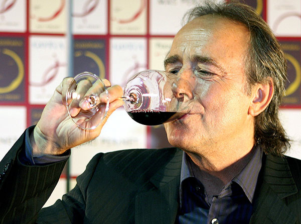 JOAN MANUEL SERRAT, en una de las presentaciones de su bodega en España.