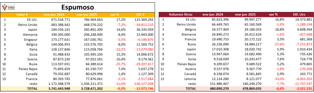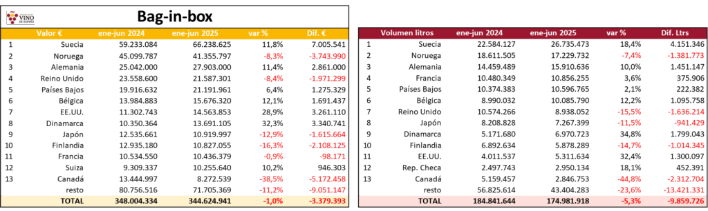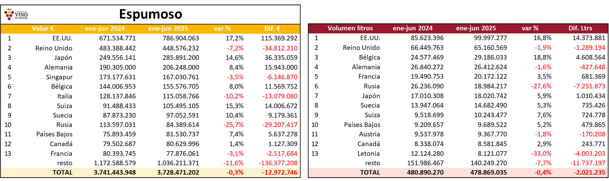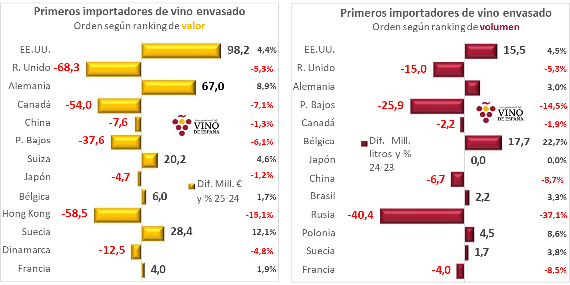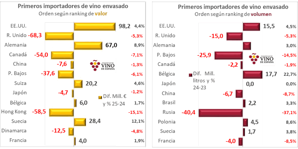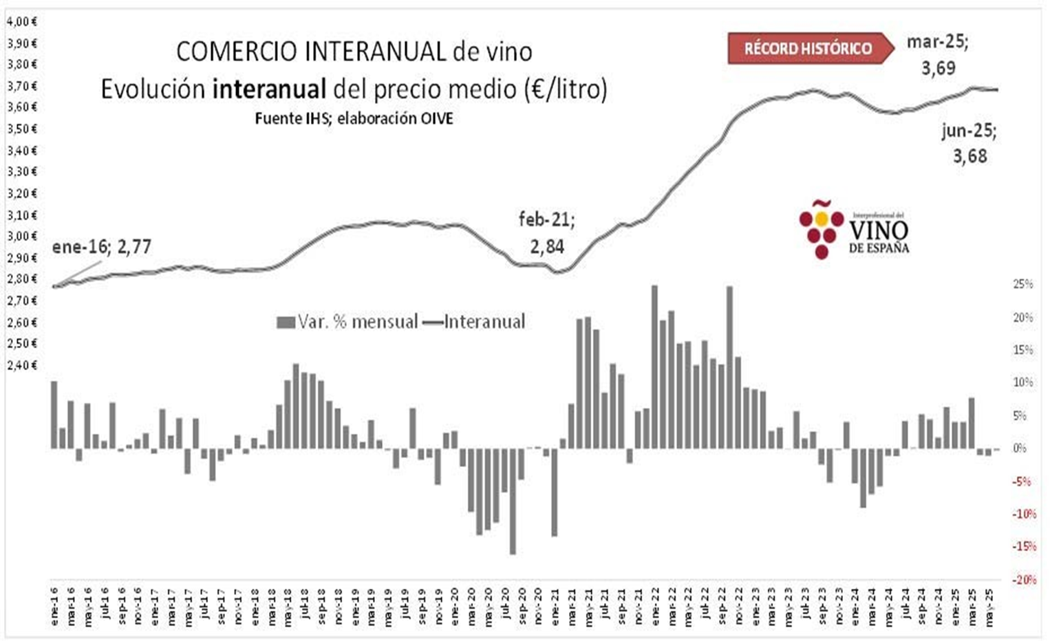 El comercio mundial de vino cayó 3,7% en volumen y 2,3% en valor el 1° semestre de 2025 vs 2024