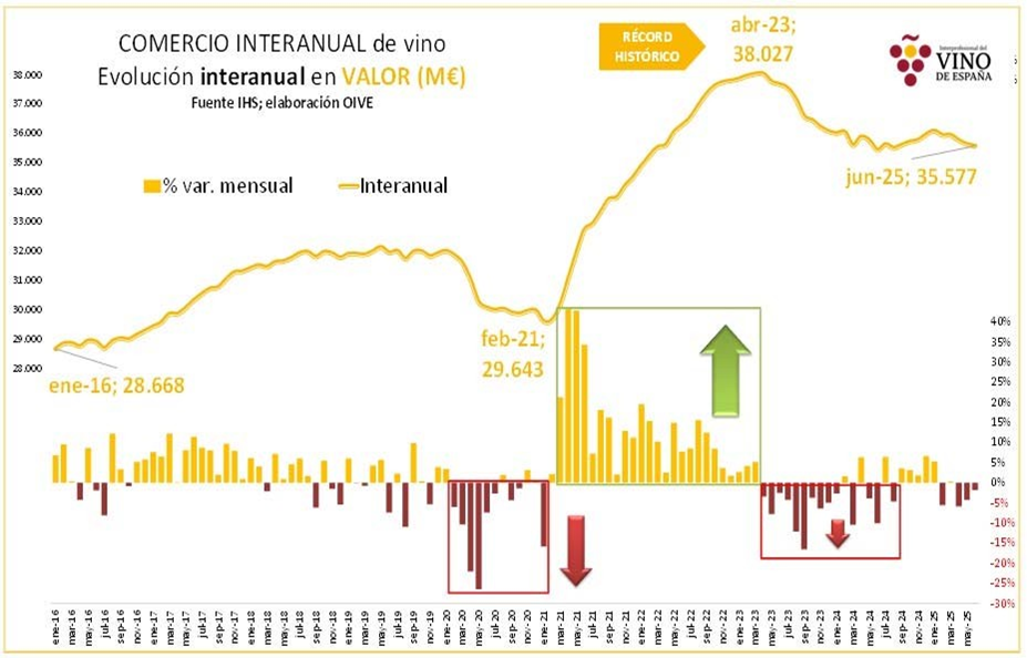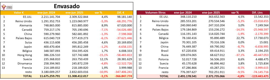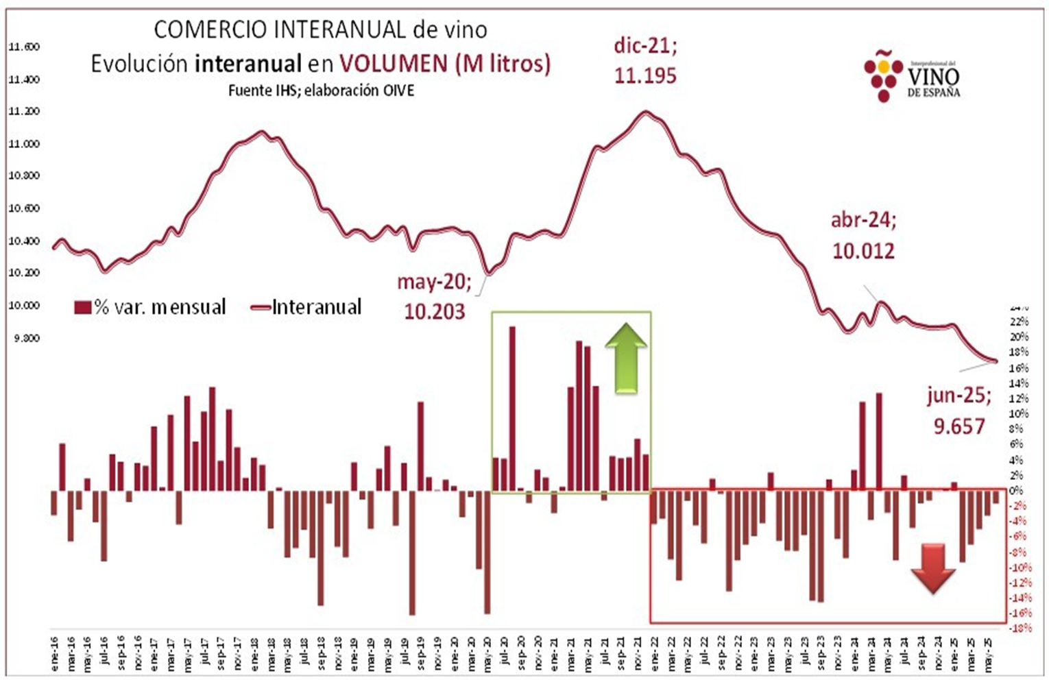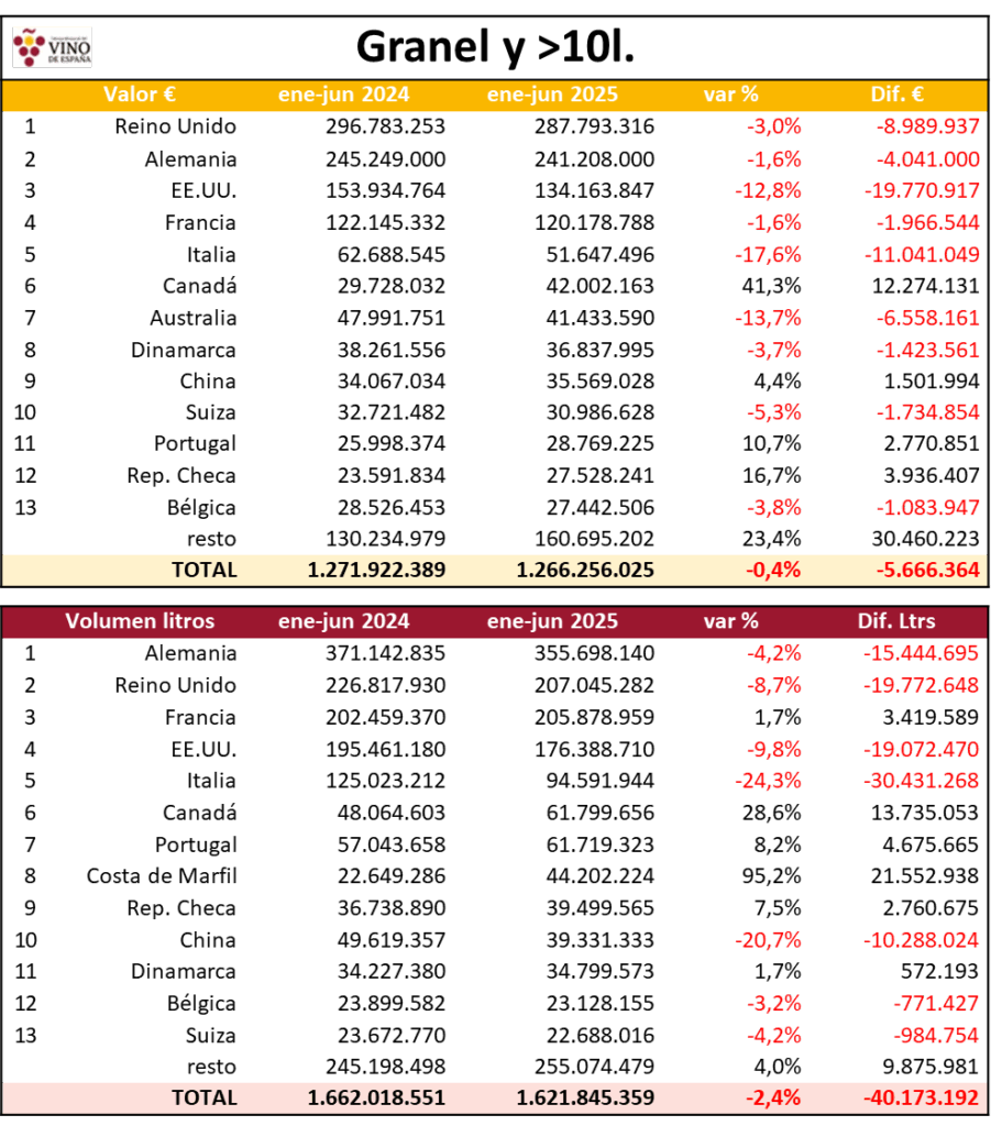 Home MERCADOS El comercio mundial de vino cayó 3,7% en volumen y 2,3% en valor el 1° semestre de 2025 vs 2024