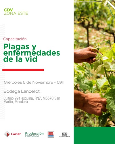 La primera de las capacitaciones, este miércoles 5 de noviembre desde las 9 hs en la bodega Lanzilotta del departamento de San Martín, será sobre plagas y enfermedades en vid. La charla educativa y práctica son sin inscripción previa y estarán a cargo de las agrónomas Romina Molina y Griselda Portera, del CDV Zona Este. Se trata de un tema de fuerte impacto con el objetivo de fortalecer el conocimiento en el manejo sanitario de los viñedos.