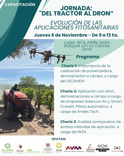La siguiente capacitación, el jueves 6 de noviembre, será en la sede del INTA Junín, ubicada en calle Isidro Busquet s/n de La Colonia, Junín. Allí los expertos de la entidad hablarán sobre el tema «Del tractor al dron, evolución de las aplicaciones sanitarias», a la vez que realizarán demostraciones prácticas sobre la calibración de las pulverizadoras y un análisis comparativo de ambas técnicas.