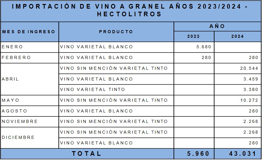 En 2024 Argentina importó 45.971 hectolitros de vino, casi todo desde Chile