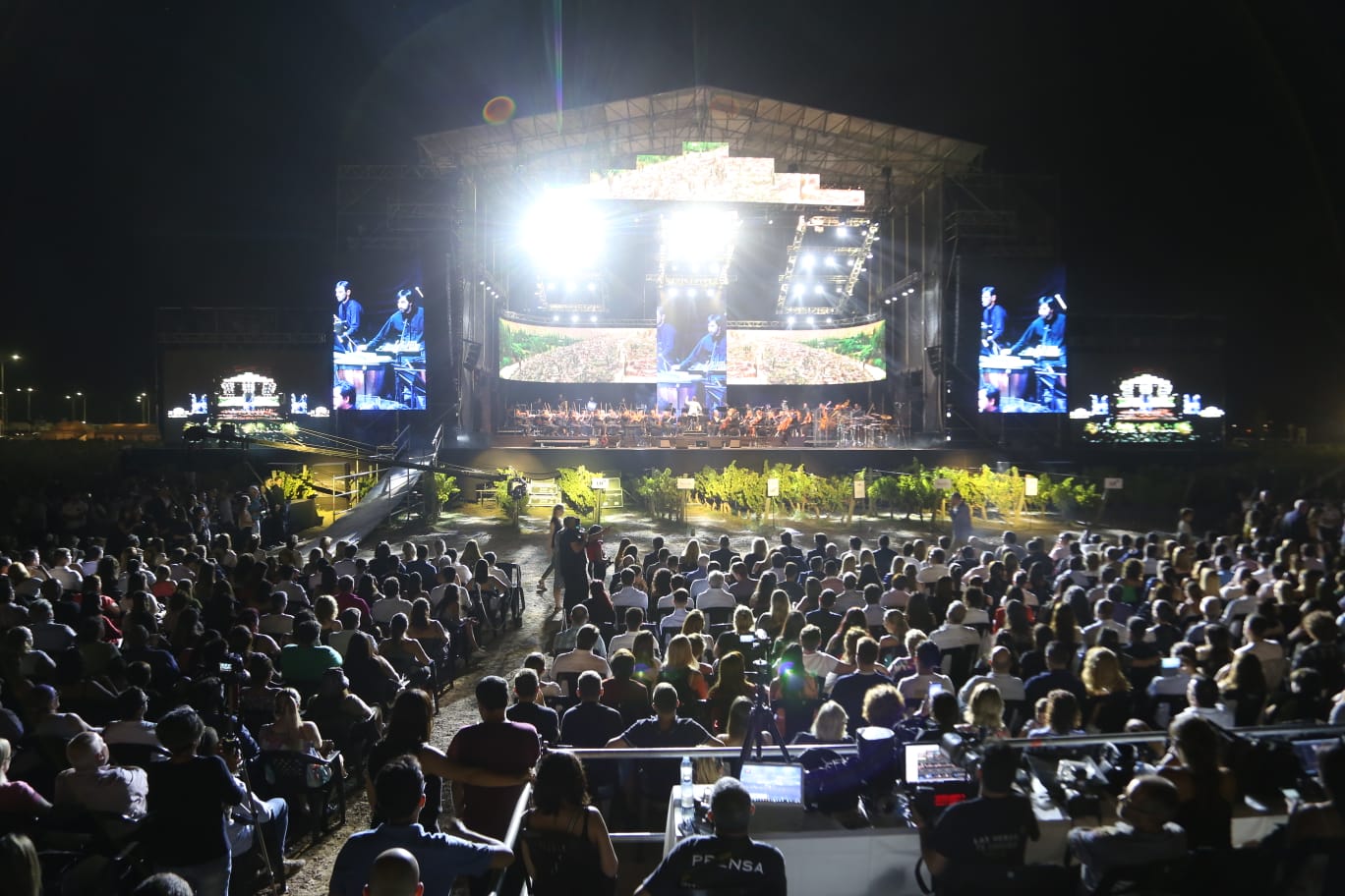 Sobre el escenario, que literalmente flota sobre el emblemático viñedo de Malbec, la Filarmónica provincial -y también otras orquestas que fueron parte de la Fiesta como la Sinfónica de la UNCuyo y la Orquesta del Teatro Colón– ha sido la base de un repertorio cuidadosamente elegido para representarnos ante el país y el mundo.