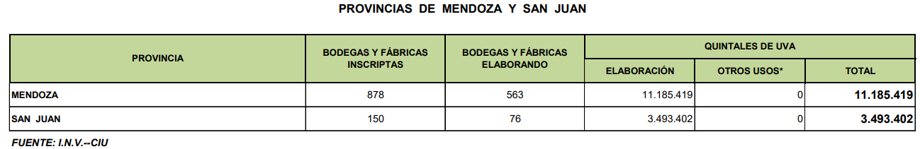 A continuación replicamos algunos de los cuadros estadísticos divulgados hoy 7/4/2026 por el Instituto Nacional de Vitivinicultura (INV).