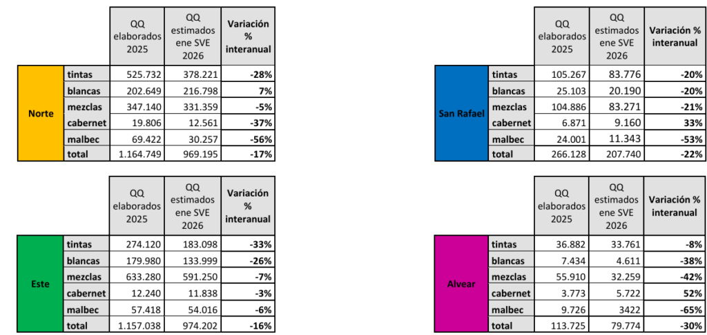 El estudio, realizado técnicamente por el área de Agronomía de la Cooperativa de Provisión de Servicios Vitícolas y Enológicos (SVE) en articulación con la Federación de Cooperativas Vitivinícolas Argentinas (Fecovita) y la Asociación de Cooperativas Vitivinícolas (Acovi) de Argentina, se sustenta en el seguimiento de 179 parcelas representativas. Los datos muestran una realidad dispar según la variedad y zona.