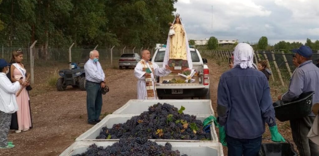 La imagen actual de la Virgen de la Carrodilla fue bendecida por quien fue obispo de Mendoza, monseñor José María Arancibia, en 2006, y desde entonces preside la Bendición de los Frutos, icónica celebración religiosa vendimial.