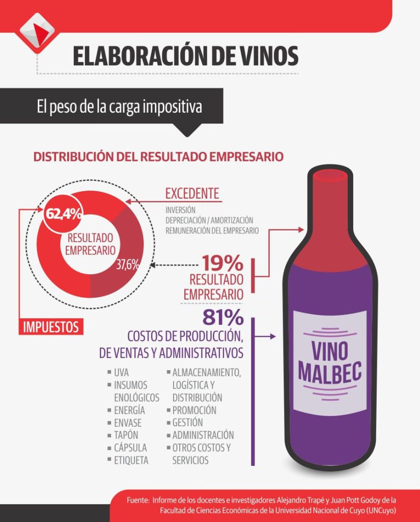 Los impuestos del vino en fincas y bodegas argentinas van del 57% al 62%, el doble que en Chile