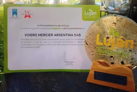 Vivero Mercier Argentina fue nuevamente reconocido por la Municipalidad de Luján de Cuyo con el Sello Luján Sustentable (SLS), una distinción que destaca a las empresas y organizaciones que promueven buenas prácticas ambientales y sostenibles. En esta edición, el vivero alcanzó la categoría tipo A, que representa el máximo nivel de sostenibilidad establecido por el municipio.