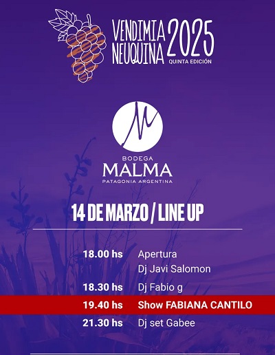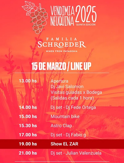 La Vendimia Neuquina 2025 tiene confirmada su agenda y promete dos días inolvidables entre viñedos, música, shows en vivo y experiencias únicas en las bodegas Malma y Familia Schroeder.