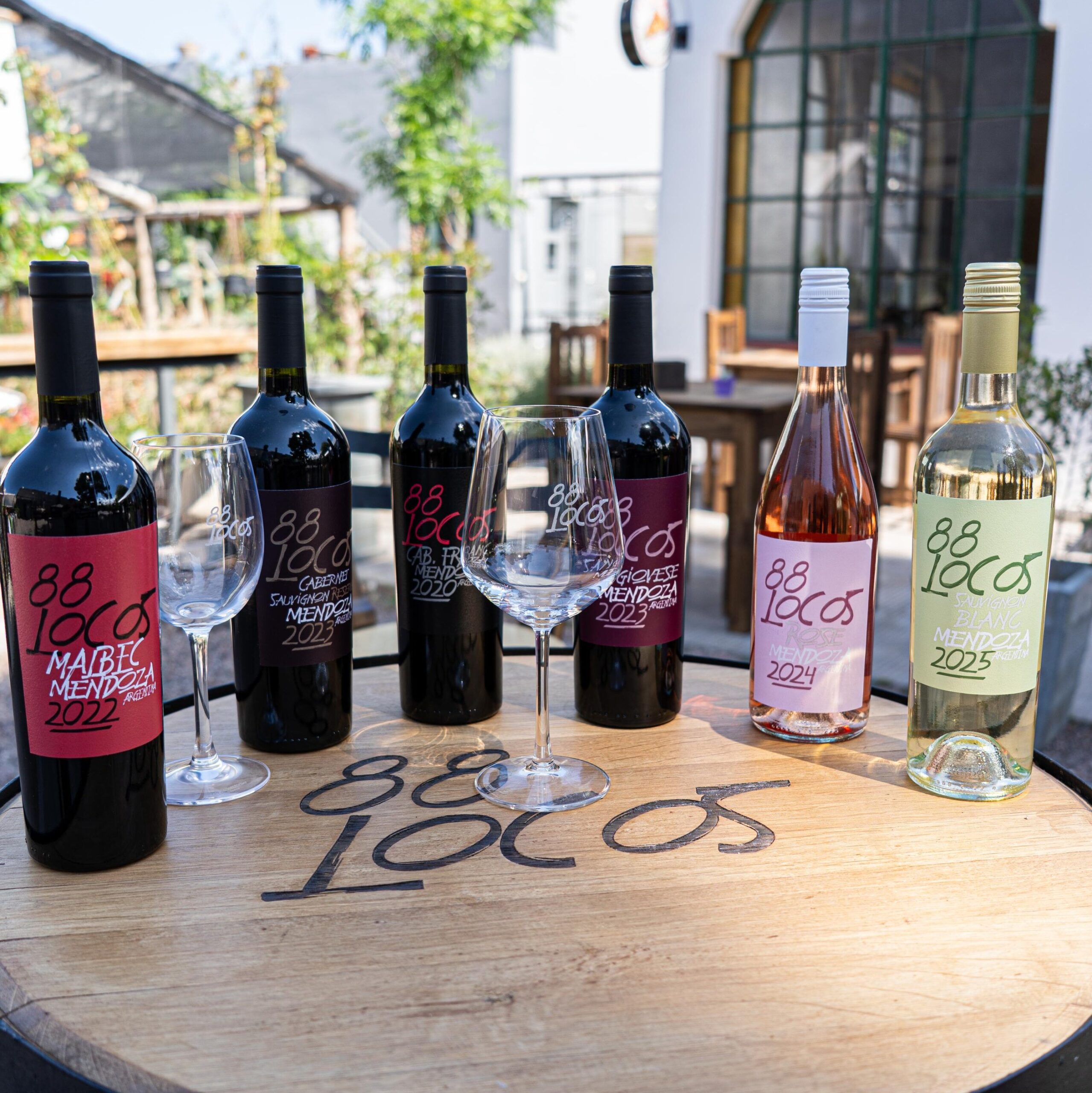 Con una buena dosis de sana locura, el trío de amigos Juan Cruz Zuloaga, Jeff McLoud y Artem Safonov ponen todo de sí para ofrecer a los vinómanos mendocinos las nuevas añadas de su noble producto, el vino 88 Locos, en sus versiones Malbec, Cabernet Franc, Cabernet Sauvignon Reserva, Sangiovese, Sauvignon Blanc y Rosé.