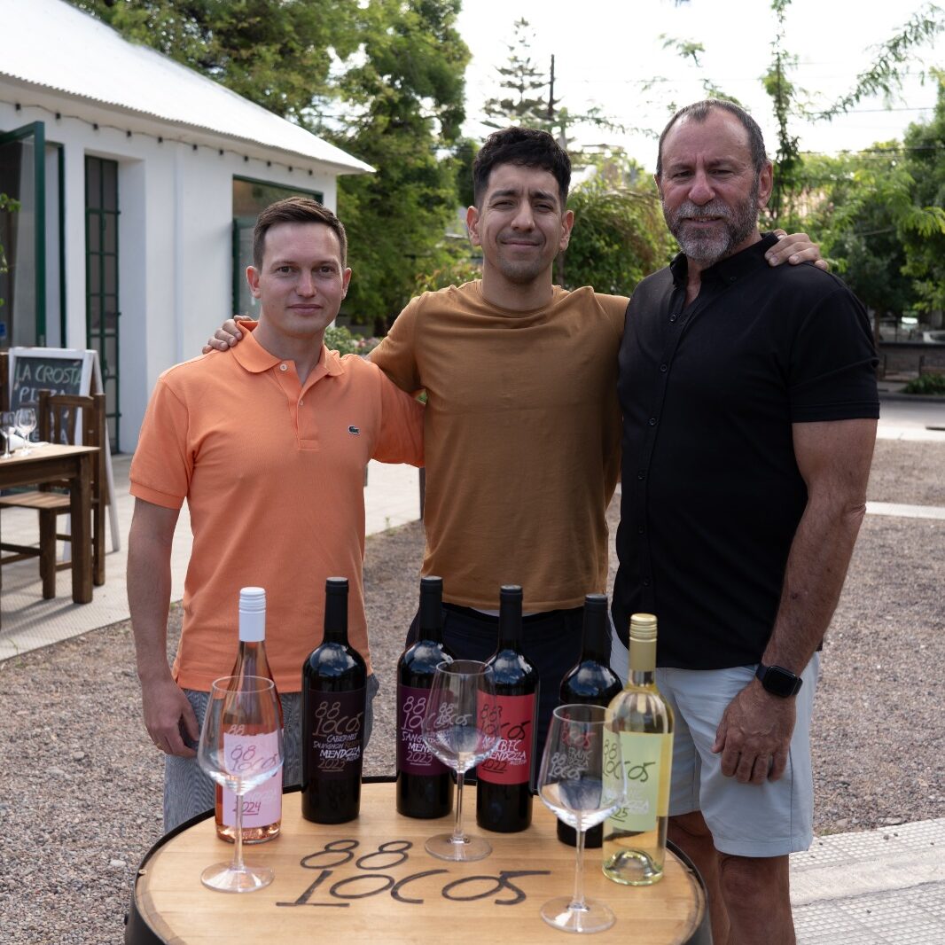 Juan Cruz Zuloaga, Jeff McLoud y Artem Safonov (foto principal) se conocieron en Mendoza en 2023 y se hicieron amigos, unidos por la pasión por el vino. Un mendocino de pura cepa, un estadounidense trotamundos y un joven ruso en busca de una nueva vida y horizontes para su familia. El destino los juntó en torno a la reconocida etiqueta 88 Locos, heredada de otra incansable emprendedora, Belén Abate. Hoy los tres socios ponen en escena su marca remozada, en 6 opciones varietales, junto a tapeos y música, en Con Naturaleza, un espacio ecológico, amigable y wine friendly ubicado en Paso de los Andes 147 de la Capital de Mendoza.