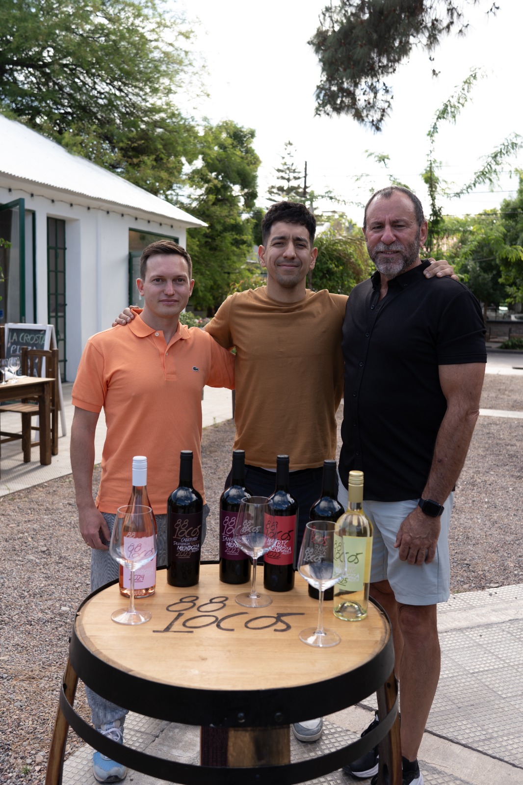 Con una buena dosis de sana locura, el trío de amigos Juan Cruz Zuloaga, Jeff McLoud y Artem Safonov ponen todo de sí para ofrecer a los vinómanos mendocinos las nuevas añadas de su noble producto, el vino 88 Locos, en sus versiones Malbec, Cabernet Franc, Cabernet Sauvignon Reserva, Sangiovese, Sauvignon Blanc y Rosé.